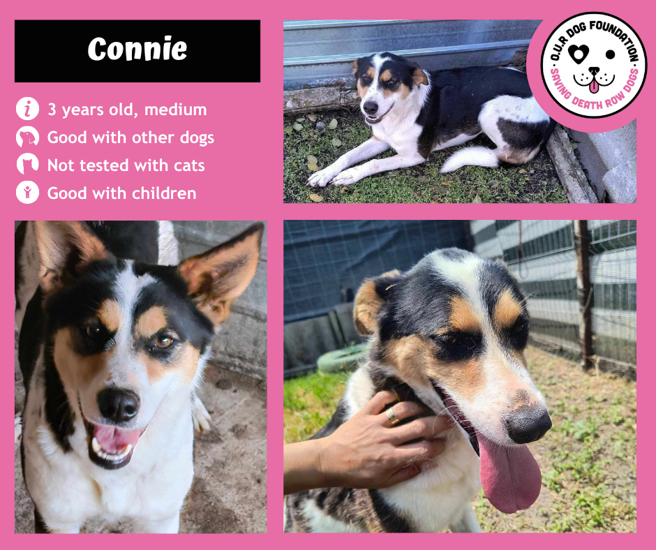 Connie will need some support with learning to walk on a lead, she will currently wear a lead attached to her collar but wonβt move with it on. Her sweet personality makes her gentle with children, interacting well at the shelter with children as young as 3 years old. Connie loves people, and jumps for joy when her foster comes towards her pen, ready to give lots of cuddles. Although Connie gets on well with other dogs and enjoys playing with them, she would adjust well to either having a canine pal around or being an only dog.