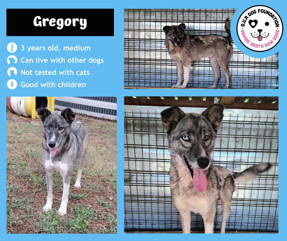 Gregory is a super friendly boy, having quickly made himself known as the friendliest of the dogs we took on that rescue mission, eager for attention almost from the start! He is known for jumping up in his pen at the sight on his foster, so excited to get some attention.