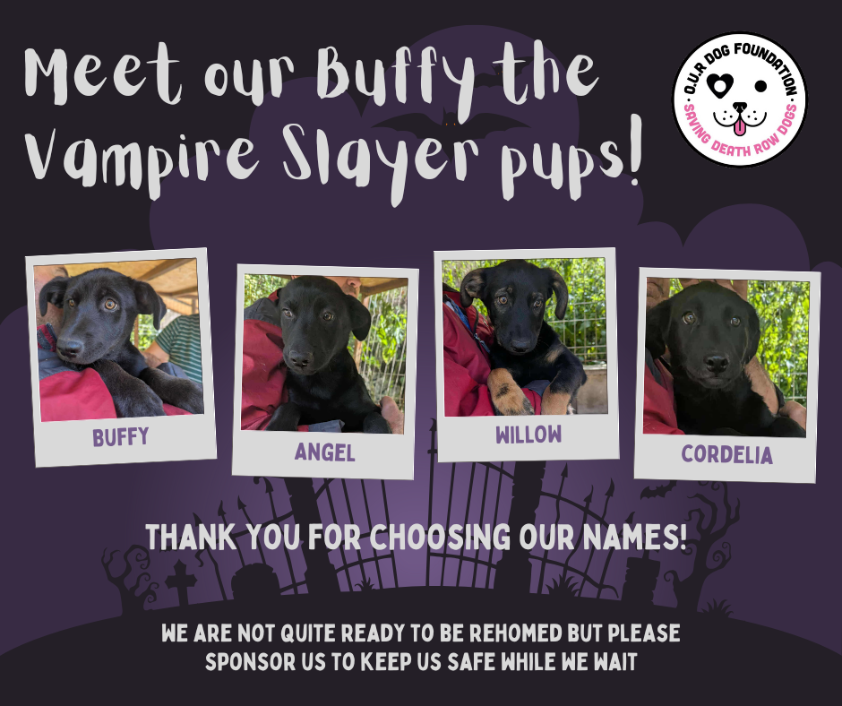 Thank you to everyone who voted to name our puppies rescued from the cemetery! The winning theme was…. Buffy the Vampire Slayer!