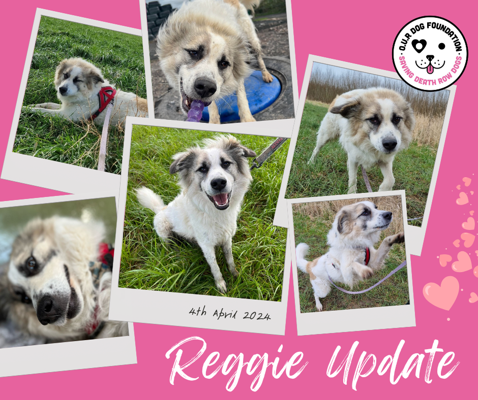 Reggie plays well with the other dogs and shows his youth whilst running circles around some of his older friends.