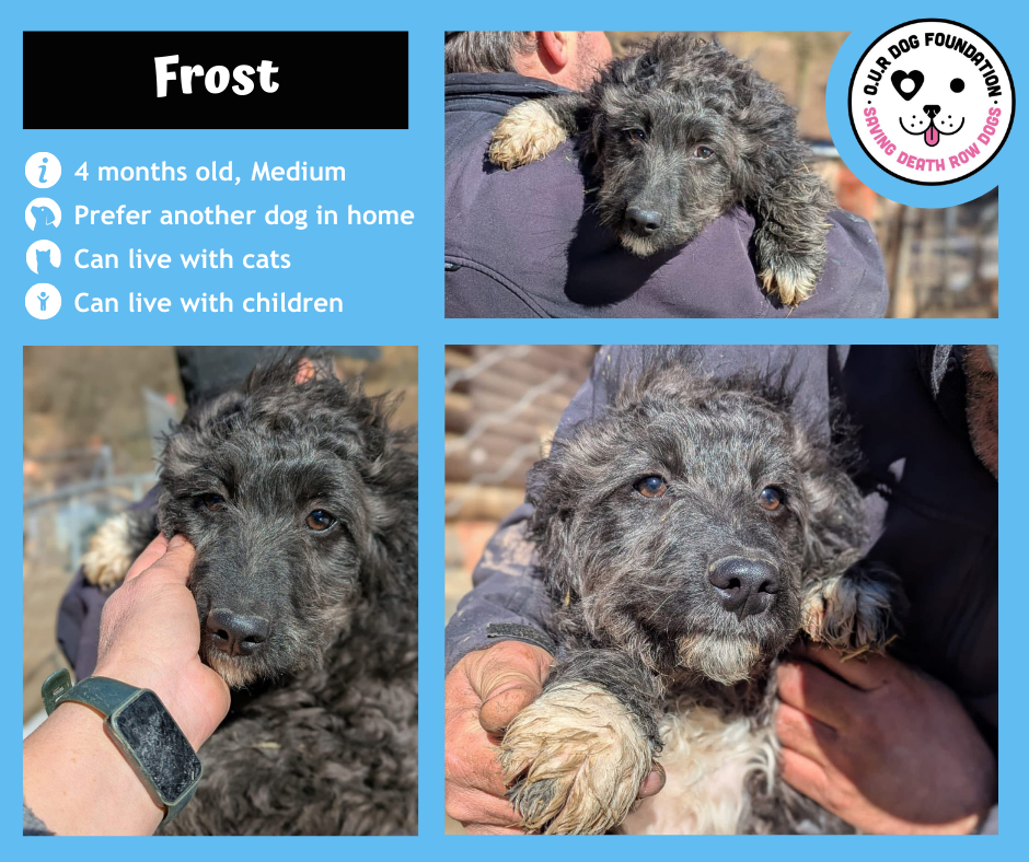 Dumped in a box with his siblings outside Alinaโs gate in the freezing cold, Frostโs early life didnโt start with security. But with care and patience, he has grown into a sweet, gentle puppy who is ready for the right home.