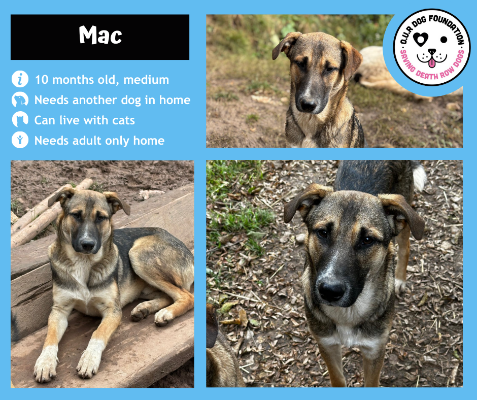 To help him truly thrive, Mac needs an adult-only home with a calm, steady environment. A young, friendly resident dog is a must β he finds comfort and confidence in canine companionship and loves to follow their lead.